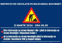 Primăria Municipiului Focșani anunță restricționarea temporară a circulației rutiere pe Bulevardul București pentru sâmbătă, 21 martie 2026, ca urmare a unor lucrări de asfaltare...