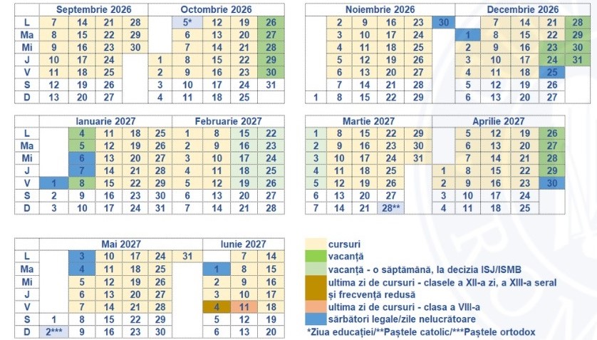 - Cursurile anului școlar 2026-2027 vor începe pe 7 septembrie 2026 și se vor încheia pe 18 iunie 2027.
