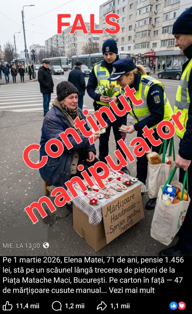 Semnalăm o campanie de influențare a populației, menită să divizeze cetățenii și să inducă teamă și neliniște socială. Autorii folosesc personaje create cu aplicații de inteligență artificială, cărora le atribuie în mod fals identitatea de angajați ai MAI – polițiști sau jandarmi. Deși, la prima vedere, postarea pare să promoveze acțiunile unor polițiști, în realitate scopul este altul: