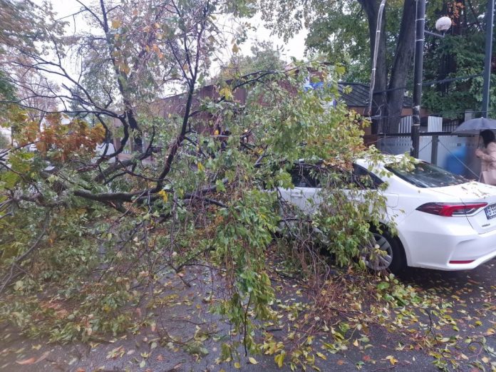 Un echipaj din cadrul Detașamentului de Pompieri Focșani intervine pentru degajarea unui arbore căzut pe carosabil și pe un autoturism, în municipiul Focșani, str. Aleea Echității.