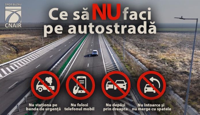 Nu întoarceți și nu circulați cu spatele pe autostradă! Aceste manevre sunt interzise și extrem de periculoase. Dacă ați ratat ieșirea, continuați până la următoarea. Întoarcerea sau mersul cu spatele pot provoca accidente grave, cu consecințe dramatice.