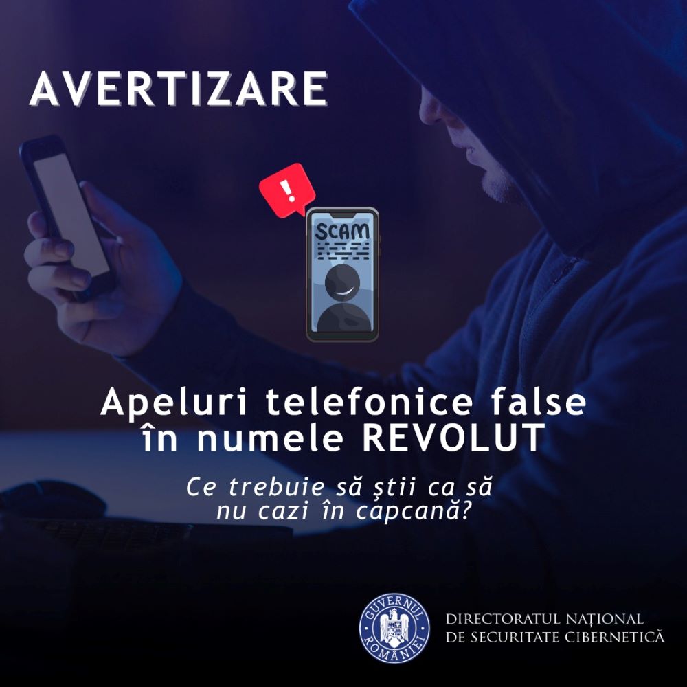 Reține: Revolut te contactează doar prin aplicație, nu prin apel telefonic direct. Dacă apelul nu este inițiat din aplicație, cel mai probabil este o înșelătorie. (sursa: Directoratul Național de Securitate Cibernetică / detalii pe Revolut)