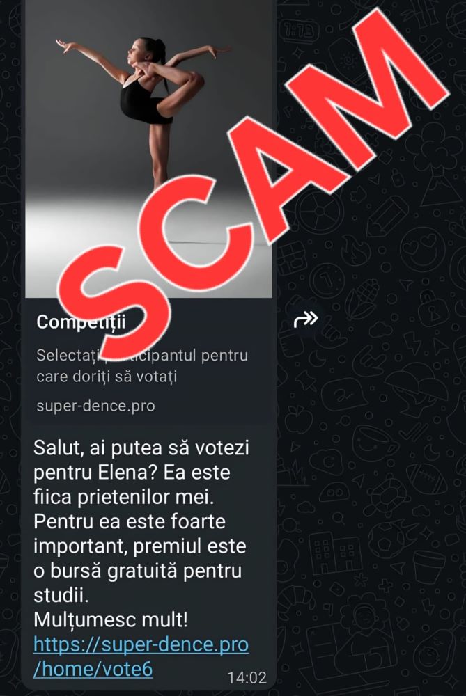 Vă informăm că a fost reluată o campanie frauduloasă prin care atacatorii încearcă să inducă în eroare cetățenii pentru a obține acces la date personale și la conturile de mesagerie. Mesajele din campania „votează copilul prietenului meu” conțin un link malițios!