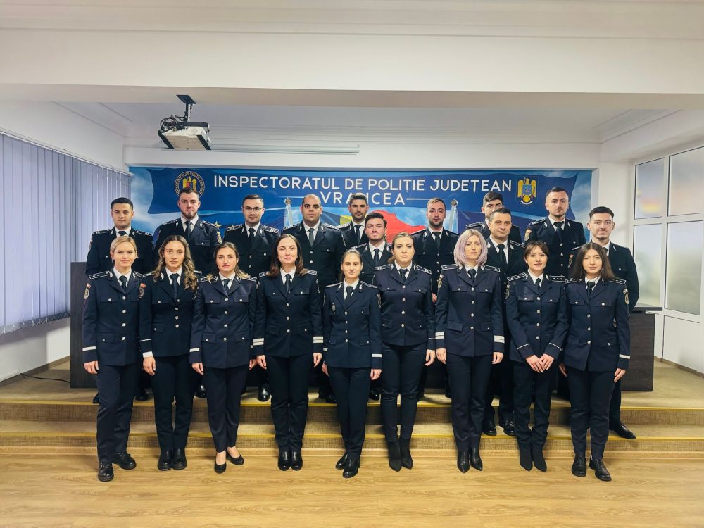 „Cu prilejul Zilei Naționale a României – 1 Decembrie 2025, în cadrul unei ședințe festive organizate la sediul Inspectoratului de Poliție Județean Vrancea, 22 de polițiști au fost avansați în gradul profesional următor, înaintea îndeplinirii stagiului minim, în semn de recunoaștere a meritelor și rezultatelor deosebite obținute în activitatea profesională. Avansarea înainte de termen reflectă recunoașterea profesionalismului, a dedicării și a responsabilității demonstrate în slujba cetățenilor. Conducerea Inspectoratului de Poliție Județean Vrancea le transmite felicitări și le urează succes în activitatea viitoare”, a transmis conducerea IPJ Vrancea.