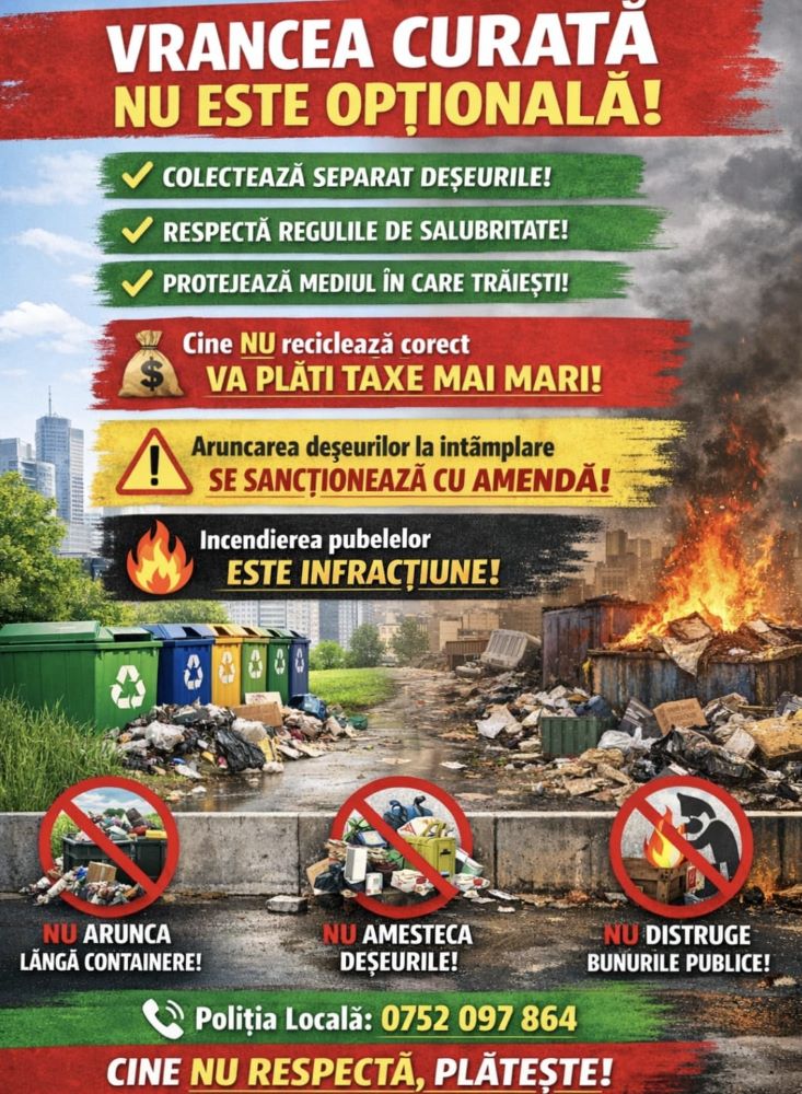Autoritățile locale reamintesc că gestionarea corectă a deșeurilor este o responsabilitate comună, iar astfel de campanii contribuie direct la protejarea mediului și la dezvoltarea unei comunități mai curate. (sursa: ADI Vrancea Curată)