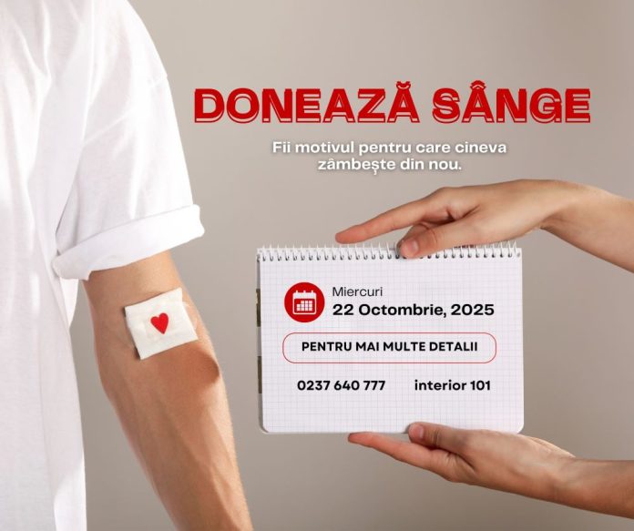Spitalul Municipal Adjud organizează o nouă acțiune de recoltare de sânge. Adjudenii și cei din localitățile apropiate sunt invitați miercurea viitoare, la unitatea spitalicească, pentru a dona lichidul vital. Pe lângă salvarea unor vieți, donarea de sânge aduce și avantaje pentru donatori. ”Fii motivul pentru care cineva zâmbește din nou! Donarea de sânge înseamnă șansa la viață pentru pacienții aflați în situații critice. Fiecare donator devine un sprijin real pentru sistemul medical și pentru cei care luptă în fiecare zi să se vindece. Alătură-te campaniei de donare de sânge organizate pe 22 octombrie 2025, la Spitalul Municipal Adjud. Programează-te acum la numărul 0237 640 777, interior 101. Împreună, putem salva vieți!”, au transmis reprezentanții Spitalului Adjud.
