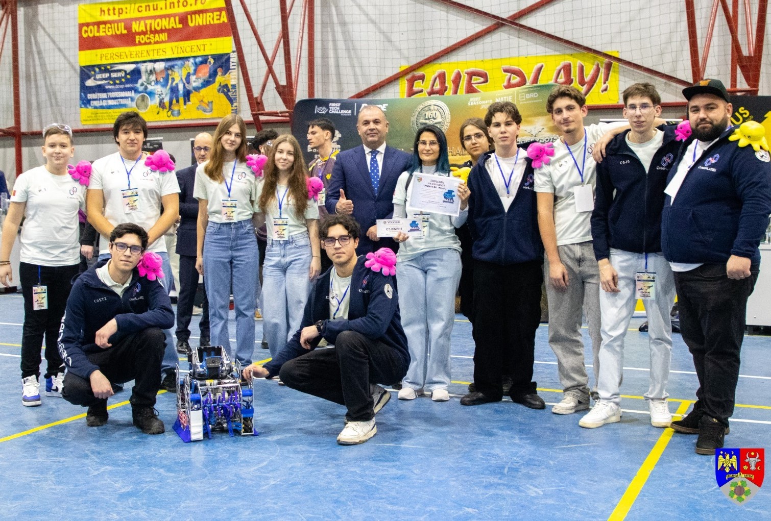 Președintele Consiliului Județean Vrancea, Nicușor Halici, a fost sâmbătă, 24 ianuarie, în mijlocul participanților și a felicitat personal elevii și profesorii coordonatori, oferind din partea Consiliului Județean Vrancea diplome de participare și vouchere în valoare de 1.000 de lei pentru fiecare echipă, din care își pot cumpăra materiale pentru experimente viitoare și pentru roboții pe care îi construiesc. ”Vă felicit pentru dedicare, creativitate și pasiunea pe care o puneți în robotică. Vă susțin din tot sufletul, tehnologia și inovarea sunt porți deschise spre viitor, pe care voi îl construiți acum. Consiliul Județean rămâne un partener deschis și un susținător al educației și al creativității pentru tânăra generație”, a spus președintele Nicușor Halici. (Biroul de Presă al Consiliului Județean Vrancea)