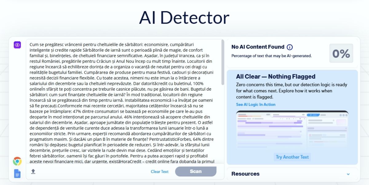 Potrivit statisticilor Forbes, 64% dintre români depășesc bugetul planificat în perioadele de reduceri. Și, într-adevăr, la sfârșitul lunii decembrie cresc prețurile și se înmulțesc vizitele la rude. Cedând emoțiilor și tentațiilor febrei sărbătorilor, oamenii ajung să își creeze găuri în buget. Pentru a putea acoperi rapid și avantajos aceste nevoi financiare mici, dar urgență, există HoraCredit – credit online fara dobanda la primul imprumut. Cu ajutorul acestuia, poți acoperi cheltuielile rapid și eficient, fără a crește nivelul general al presiunii financiare.