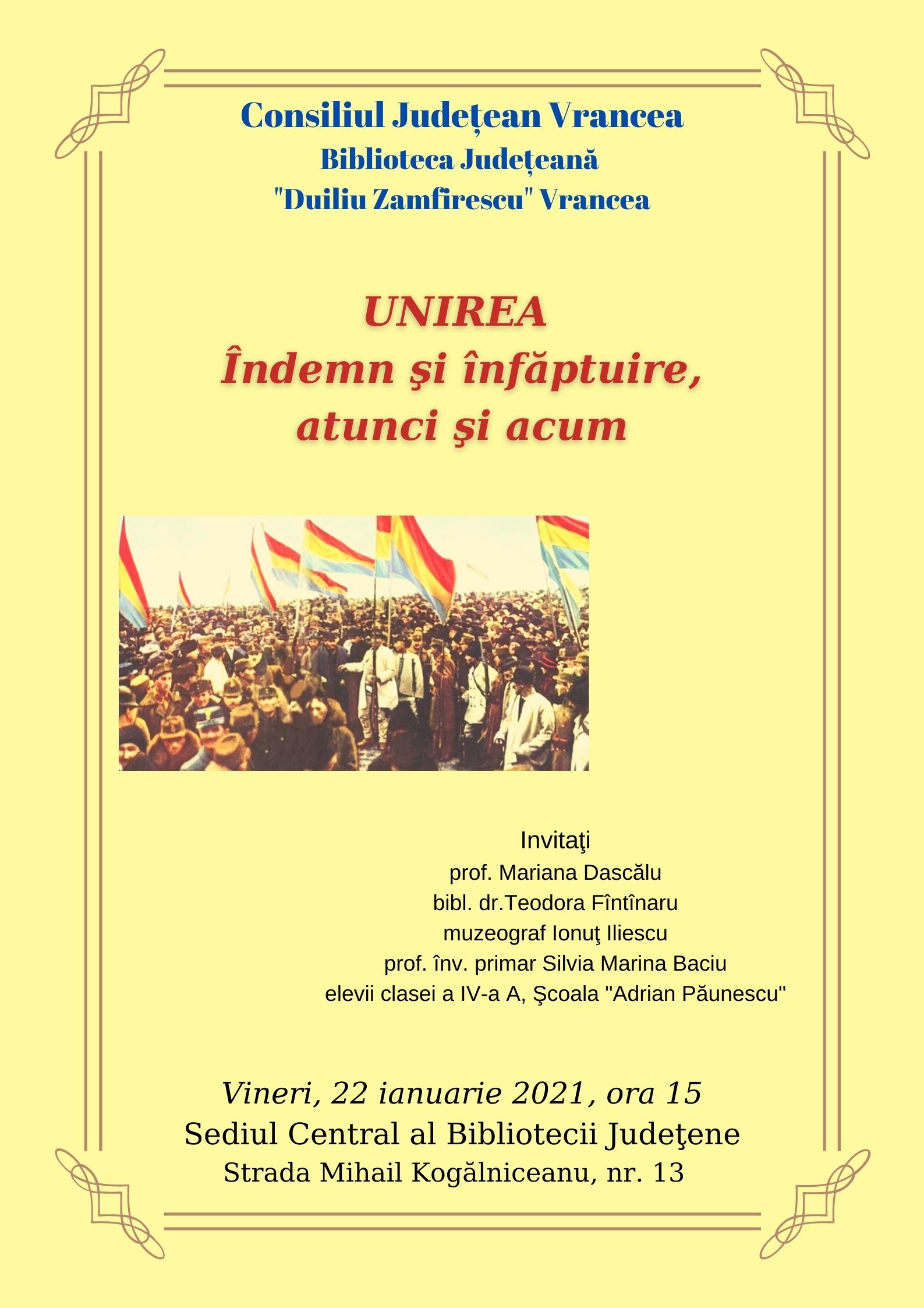 Eveniment dedicat Unirii Principatelor Române la Biblioteca Județeană