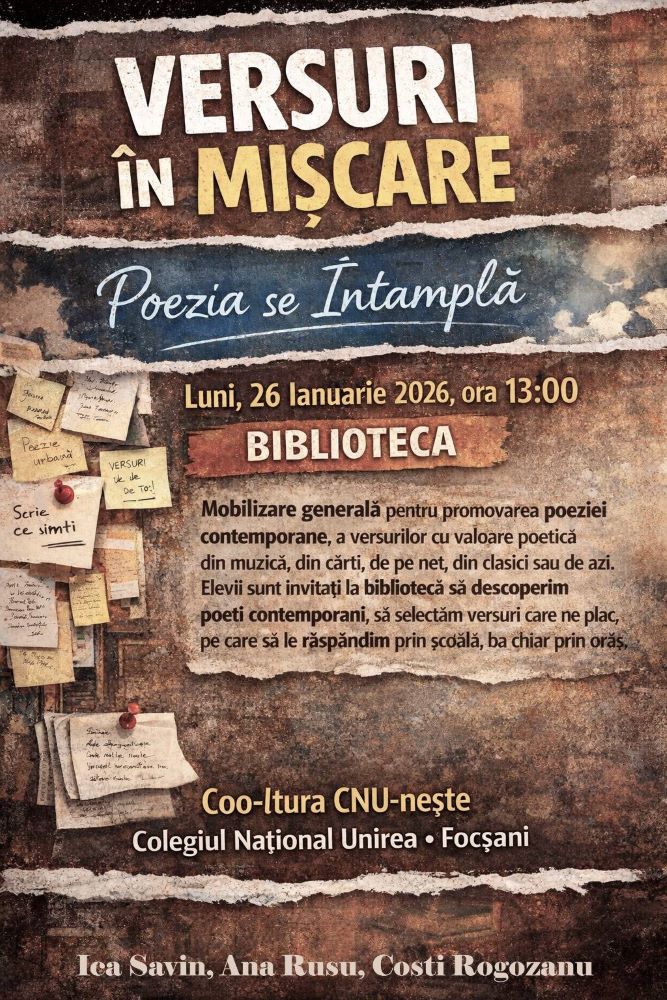 – Poezie în Mișcare – versuri din muzică veche/nouă, din clasici sau de pe TikTok, duse prin oraș ca vibe.@Ana si Costi – 26 ianuarie.