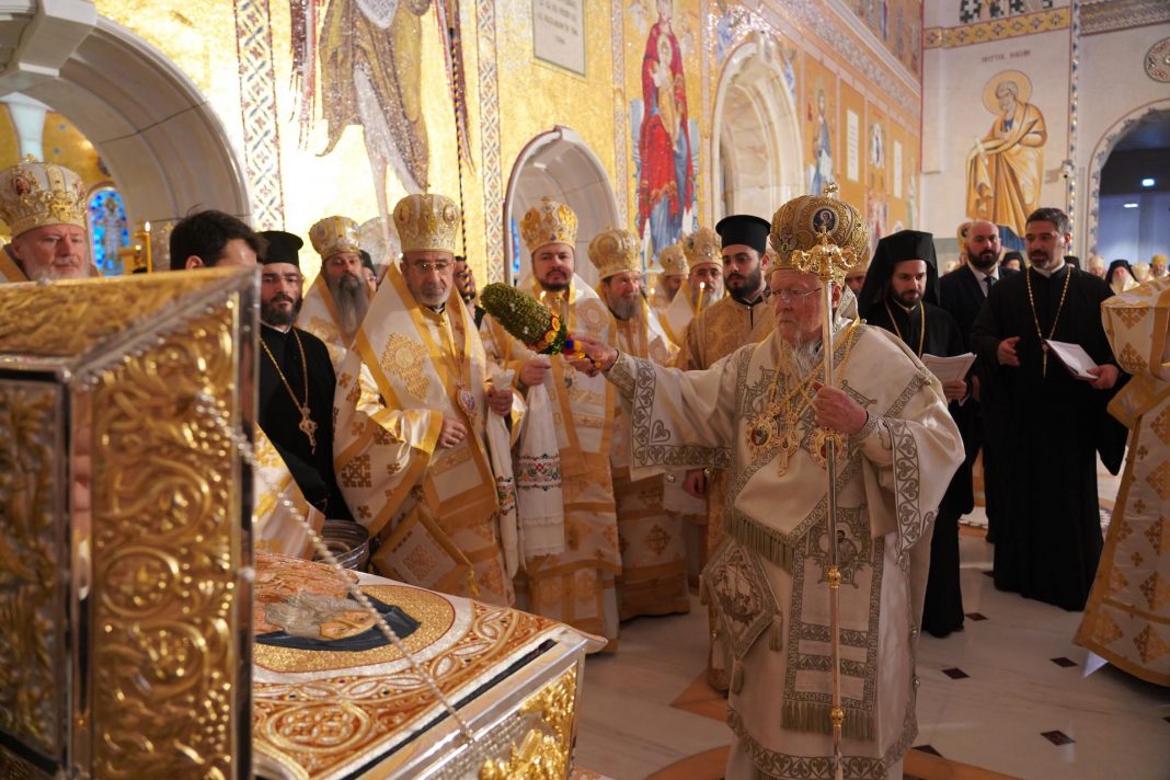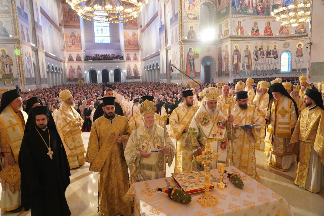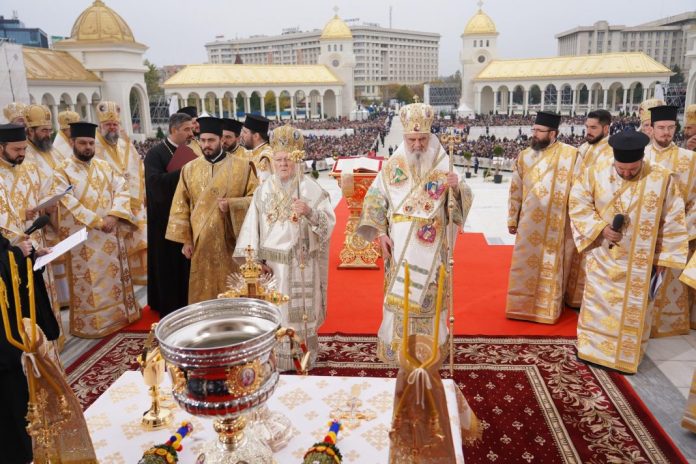 Duminică, 26 octombrie 2025, de sărbătoarea Sfântului Mare Mucenic Dimitrie, Izvorâtorul de Mir, Catedrala Națională din București a fost gazda unui eveniment istoric: sfințirea picturii în mozaic și a exteriorului lăcașului de cult de către Sanctitatea Sa Bartolomeu I, Patriarhul Ecumenic al Constantinopolului, și Preafericitul Părinte Daniel, Patriarhul României. La acest moment de rugăciune și binecuvântare a participat și Înaltpreasfințitul Părinte Ciprian, Arhiepiscopul Buzăului și Vrancei. Ceremonia a fost precedată de Sfânta Liturghie arhierească, oficiată de cei trei Episcopi-vicari din Capitală: Preasfințiții Părinți Varlaam Ploieșteanul, Paisie Sinaitul și Timotei Prahoveanul, împreună cu un sobor de 67 de preoți și 12 diaconi, din care a făcut parte și părintele Marian Gegea, vicar administrativ al Eparhiei de la Curbura Carpaților.