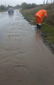 În urma ploilor abundente din ultimele ore, șanțurile de scurgere în special pe DN 2, și DN 2D în județul Vrancea și DN 26, DN 25 și DN 24D în județul Galați au fost depășite, iar apa s-a revărsat pe carosabil, afectând condițiile de trafic. Echipele DRDP Buzău intervin în teren pentru îndepărtarea acumulărilor de apă, curățarea rigolelor și deblocarea sistemelor de drenaj, astfel încât circulația să se desfășoare în siguranță.