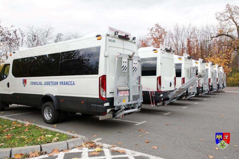 Consiliul Județean Vrancea finalizează proiectul „Verde la educație – microbuze electrice pentru elevi”, finanțat prin Planul Național de Redresare și Reziliență, prin care au fost achiziționate 24 de microbuze electrice destinate transportului elevilor din mediul rural. Fiecare microbuz are o capacitate de 16+1 locuri. Consiliul Județean a recepționat microbuzele în perioada 8 – 9 octombrie 2025 și ulterior a finalizat toate demersurile administrative necesare pentru preluarea în patrimoniu și transferul cu titlu gratuit către UAT-urile beneficiare. Prin Hotărârea CJ nr. 226/29.10.2025 a fost aprobat transferul dreptului de proprietate, iar cele 24 de localități (Bolotești, Câmpuri, Chiojdeni, Ciorăști, Corbița, Cârligele, Gura Caliței, Homocea, Jitia, Mera, Movilița, Năruja, Nereju, Ploscuțeni, Poiana Cristei, Răcoasa, Reghiu, Slobozia Bradului, Spulber, Vidra, Vulturu, Vintileasca, Vizantea-Livezi, Vârteșcoiu) au aprobat prin hotărâri ale consiliilor locale preluarea în proprietate. Valoarea totală a proiectului este de 35,9 milioane lei.