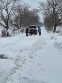 FOTO Mașină rămasă blocată în nămeții de pe DJ 202F, unde nu s-a intervenit pentru deszăpezire / Primăria Bălești a deblocat autoturismul