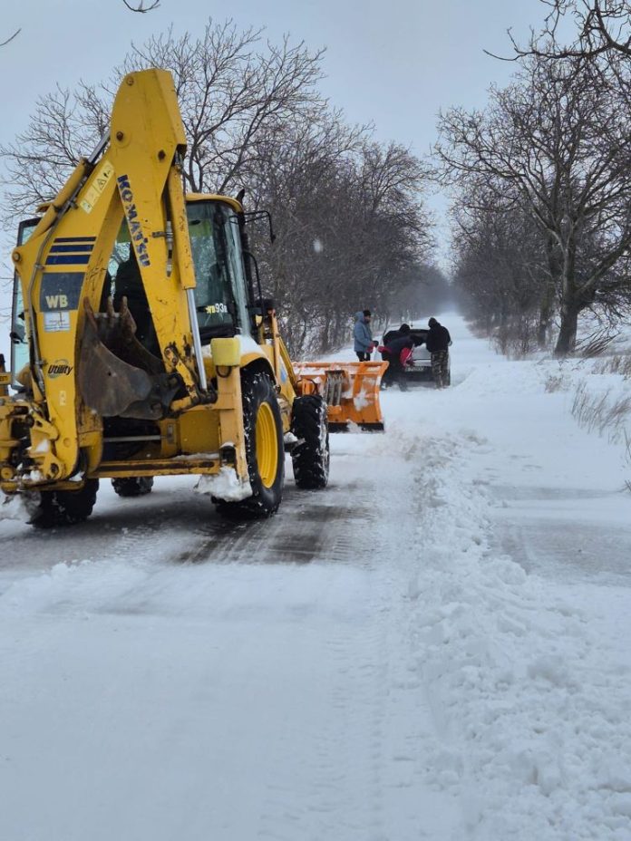 FOTO Mașină rămasă blocată în nămeții de pe DJ 202F, unde nu s-a intervenit pentru deszăpezire / Primăria Bălești a deblocat autoturismul