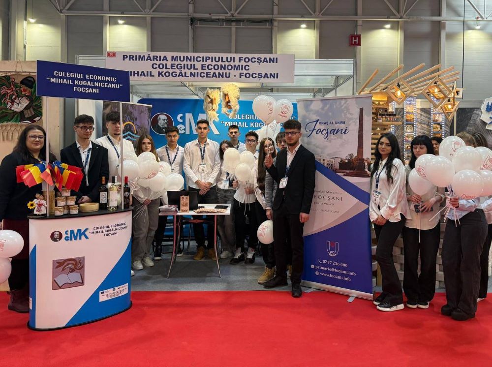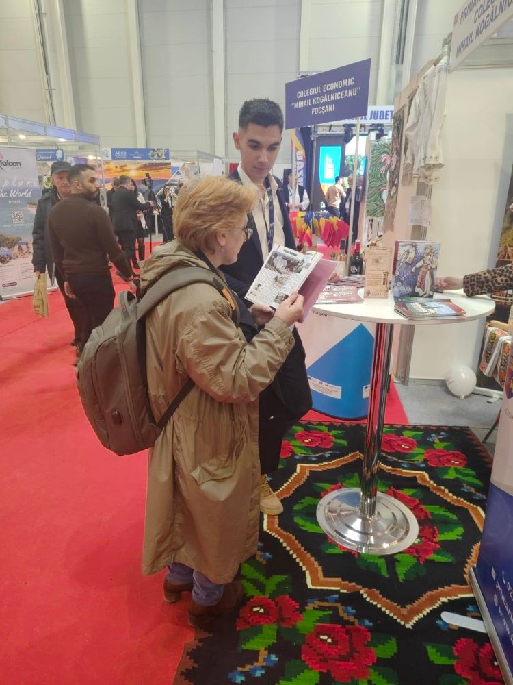 În aceste zile, la ROMEXPO, se desfășoară Târgul de Turism al României. Municipiul Focșani participă la acest eveniment cu o echipă formată din reprezentanți ai Primăriei, elevi și profesori de la Colegiul Economic ”Mihail Kogălniceanu”, artiști de la ”Țara Vrancei” și membri ai grupului Șezătoarea Focșani. ”Colegiul Economic „Mihail Kogălniceanu” Focșani, în colaborare cu Primăria Municipiului Focșani, participă la Târgul de Turism al României, promovând cu mândrie valorile și potențialul turistic al orașului nostru. Elevii clasei a XI-a F – profil Turism sunt coordonați de prof. Cristina Neguț, alături de Mădălina Răducanu și Mădălina Leuștean – reprezentante ale Primăriei Municipiului Focșani, care susțin și sprijină activ promovarea orașului în cadrul evenimentului. Prin profesionalism, creativitate și entuziasm, echipa noastră demonstrează că parteneriatul dintre școală și administrația locală contribuie la formarea viitorilor specialiști în turism. Împreună promovăm Focșaniul la nivel național!”, a transmis conducerea unității de învățământ.