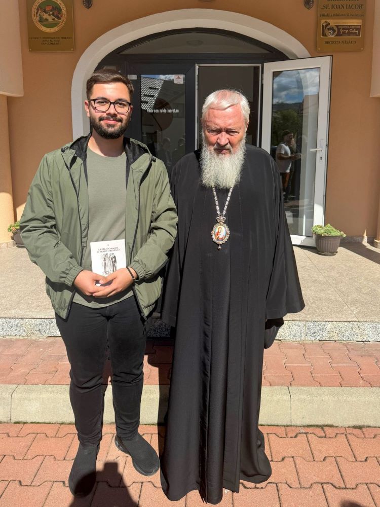 Cei doi tineri studenți aduc mulțumiri Înaltpreasfințitului Părinte Arhiepiscop Ciprian pentru binecuvântarea primită de a lua parte la această tabără. (Pr. Cristinel Hărăbor, Parohia „Tuturor Sfinților” – Focșani / Arhiepiscopia Buzăului și Vrancei)