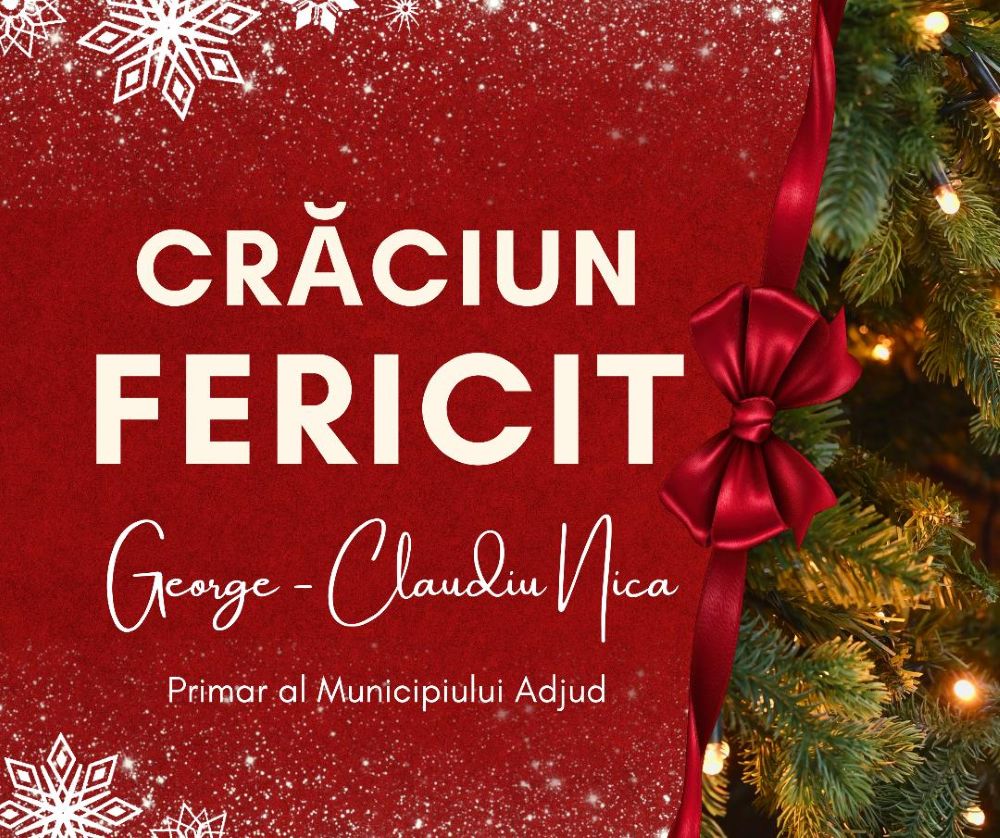AcasăAdjudGeorge Nica, primarul municipiului Adjud: Crăciun Fericit! AdjudAnunturi George Nica, primarul municipiului Adjud: Crăciun Fericit! By Redactia Vrancea24 24 decembrie 2025 0 118 Acțiune FacebookTwitterPinterestWhatsAppE-mailImprimare Acțiune FacebookTwitterPinterestWhatsAppE-mailImprimare Articolul precedentRăzvan Pascu, primarul comunei Măicănești: Crăciun Fericit și La Mulți Ani!Articolul următorVIDEO Nicușor Halici, președintele Consiliului Județean Vrancea: Crăciun Fericit și La Mulți Ani! Redactia Vrancea24 Știri din aceeași categorie Actualitate Ați văzut-o? Tânără din Adjud, dată dispărută 24 decembrie 2025 Anunturi Dragoș Ciobotaru, deputat PNL Vrancea: Crăciun Fericit! 24 decembrie 2025 Administratie Viorel Mîrza, președintele Asociației Comunelor Filiala Vrancea: Crăciun Fericit și La Mulți Ani! 24 decembrie 2025 - Advertisment - Celee mai citite ISU Vrancea – acțiune umanitară în prag de sărbători 24 decembrie 2025 Polițiștii vrânceni, ajutoarele lui Moș Crăciun / Zâmbete, emoții și bucurie 24 decembrie 2025 Intervenții pe drumurile județene în zonele unde a nins 24 decembrie 2025 Ați văzut-o? Tânără din Adjud, dată dispărută 24 decembrie 2025 Încărcați mai multe