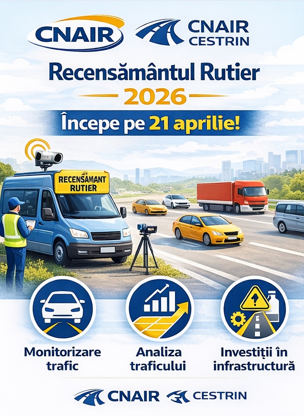 CNAIR prin intermediul Centrului de Studii Tehnice Rutiere și Informatică (CESTRIN) va organiza și coordona etapele de realizare a Recensământului General de Circulație Rutieră, o acțiune de importanță strategică pentru planificarea și dezvoltarea infrastructurii de transport din România.