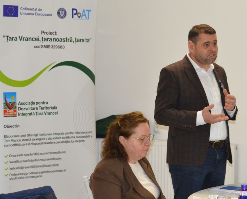 Un moment important al întâlnirii l-a constituit inițierea „Parteneriatului pentru dezvoltarea și promovarea destinației de ecoturism Țara Vrancei”, realizat în colaborare cu Asociația de Ecoturism din România. Țara Vrancei reprezintă o microregiune cu o identitate distinctă, definită de-a lungul timpului prin solidaritatea comunităților, tradițiile răzășești și un patrimoniu valoros. Cele 16 comune – Bârsești, Câmpuri, Năruja, Nereju, Nistorești, Paltin, Soveja, Tulnici, Valea Sării, Vizantea-Livezi, Vrâncioaia, Negrilești, Păulești, Spulber, Răcoasa și Vidra – sunt unite prin istorie, cultură și valori comune. „Viziunea ITI Țara Vrancei este aceea a unui teritoriu rezilient, incluziv și sustenabil, în care resursele locale sunt utilizate eficient și echitabil. Ne concentrăm pe reducerea decalajelor, investiții în infrastructură și servicii, atragerea și menținerea capitalului uman, precum și pe valorificarea patrimoniului natural prin ecoturism”, a declarat Valentin Popa, director executiv ADTI Țara Vrancei. (sursa: ADTI Țara Vrancei)