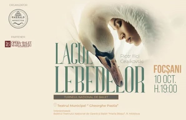 Baletul Teatrului Național de Operă și Baletul „Maria Bleșu” din Chișinău aduce pe scena Teatrului Municipal Focșani unul dintre cele mai îndrăgite spectacole ale tuturor timpurilor – „Lacul Lebedelor”, de Piotr Ilici Ceaikovski. Cu decoruri spectaculoase, costume rafinate și o distribuție impresionantă de artiști de talie internațională, spectacolul promite emoție, eleganță și frumusețe pură. Fiecare reprezentație este o invitație într-o lume de basm, unde iubirea, sacrificiul și destinul se împletesc în pași de dans desăvârșiți. Turneul va avea loc în cele mai importante orașe din România.