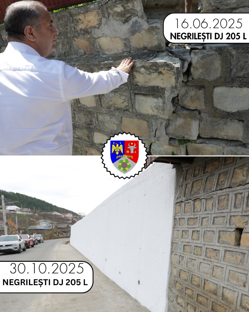 Lucrările au inclus refacerea zidurilor de sprijin, șanțuri, rigole, parapete și reabilitarea conductei de apă. Valoarea investiției: 3 milioane lei.