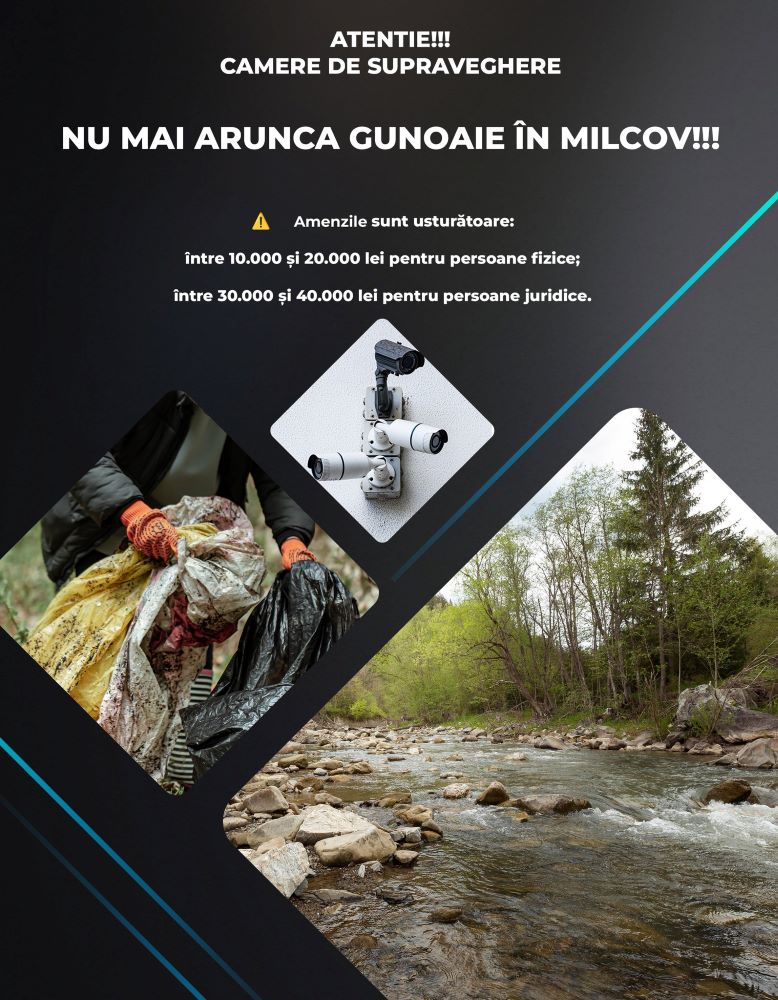 Primăria Orașului Odobești a montat camere de supraveghere video pe albia râului Milcov, în zonele unde au fost depistate frecvent depozitări ilegale de deșeuri. Scopul acestor măsuri este protejarea mediului și menținerea curățeniei în orașul nostru. Persoanele surprinse aruncând gunoaie în albia râului vor fi identificate și sancționate conform O.U.G. nr. 92/2021 privind regimul deșeurilor.