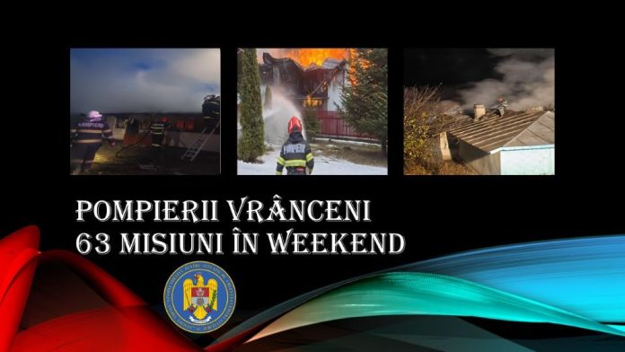 În perioada 31.01- 02.02 a.c., pompierii militari din cadrul Inspectoratului pentru Situații de Urgență „Anghel Saligny” al județului Vrancea au intervenit în 63 de misiuni, dintre care: