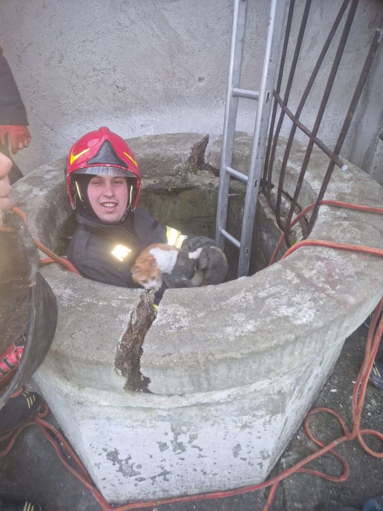 Astăzi, în municipiul Adjud, o pisică a căzut într-o fântână cu adâncimea de aproximativ 7 metri, rămânând captivă fără nicio șansă de a se salva singură. Apelul la numărul de urgență a mobilizat rapid Secția de Pompieri Adjud, care a intervenit cu o autospecială de stingere având în dotare accesorii pentru salvare. Cu grijă și profesionalism, pompierii au coborât în fântână și au reușit să scoată micuța felină în siguranță. Din fericire, pisica nu a suferit răni.