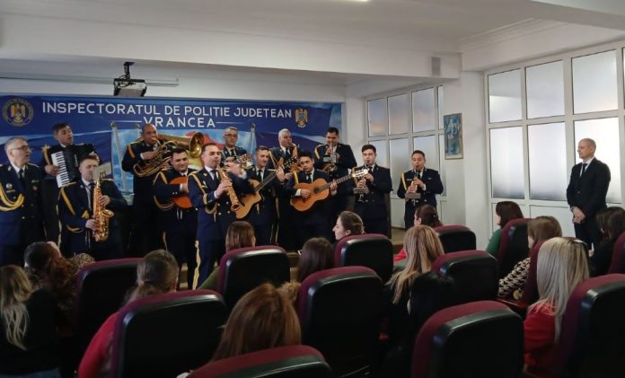 Polițiștii vrânceni, colindați de Muzica Militară a Garnizoanei Focșani