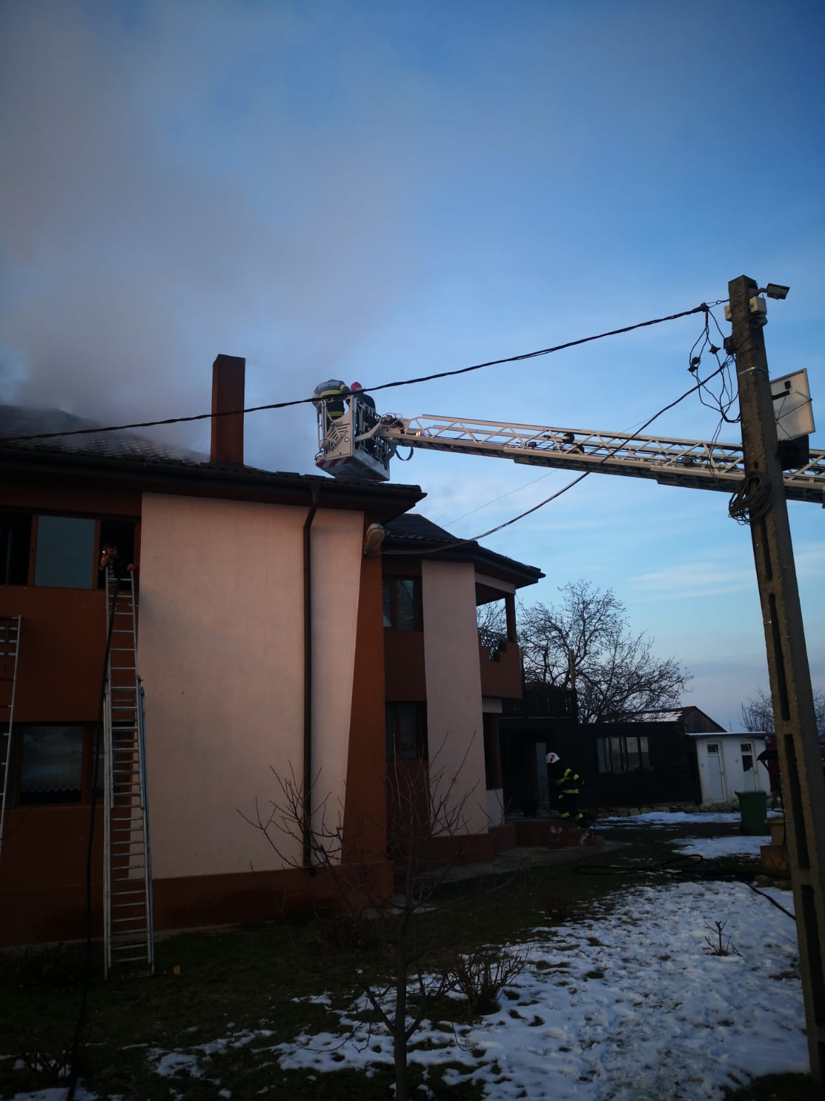Pompierii s-au luptat 3 ore cu flăcările, la Urechești, din cauza unui coș de fum neizolat și a materialelor combustibile