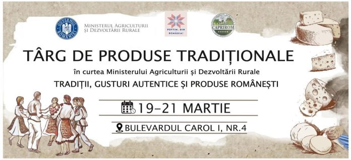 În perioada 19–21 martie, între orele 09:00 și 19:00, Ministerul Agriculturii și Dezvoltării Rurale (MADR), cu sprijinul Cooperativei Agricole Caprirom Sud Muntenia, organizează Târgul de produse tradiționale, un eveniment care îmbină tradițiile, gusturile autentice și produsele românești. Timp de trei zile, vizitatorii sunt invitați să descopere gustul autentic al produselor locale, aduse direct de producători pricepuți din județele: Argeș, Botoșani, Brașov, Brăila, Buzău, Caraș-Severin, Cluj, Constanța, Dâmbovița, Giurgiu, Gorj, Mureș, Prahova, Sibiu, Suceava, Vâlcea, Vrancea. Cei care își doresc să pună pe masă produse românești vor găsi la târg o gamă variată de bunătăți: fructe și legume proaspete, lactate și brânzeturi tradiționale, carne și preparate din carne, pește și produse din pește, produse apicole, obiecte artizanale din lavandă și multe alte bunătăți agroalimentare românești.