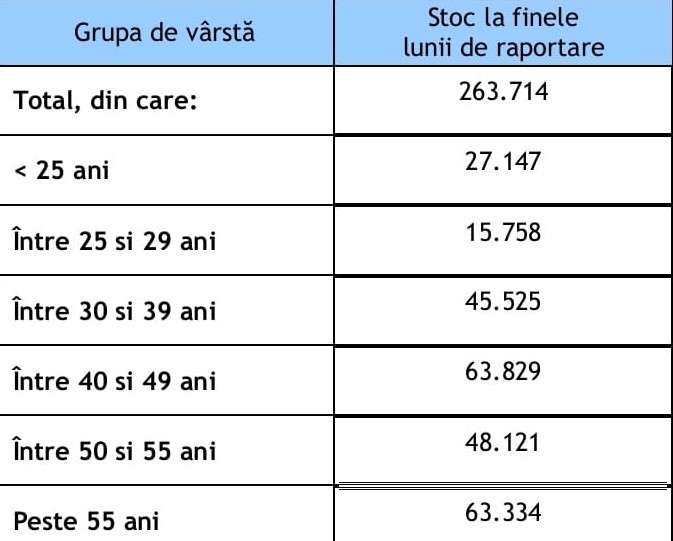 înregistrați a fost de 263.714 de persoane. Din totalul şomerilor înregistraţi, 61.155 au fost şomeri indemnizaţi şi 202.559 neindemnizaţi. Numărul şomerilor indemnizaţi a crescut cu 3.416 de persoane, iar numărul şomerilor neindemnizaţi a scăzut cu 2.120 de persoane faţă de luna precedentă.