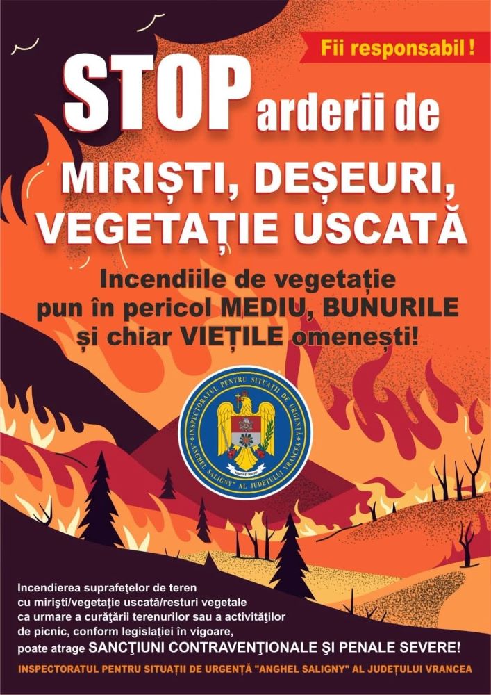 ARDEREA VEGETAŢIEI USCATE ŞI A RESTURILOR VEGETALE ESTE STRICT INTERZISĂ!