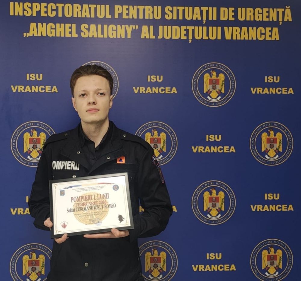 Inspectoratul pentru Situații de Urgență „Anghel Saligny” al județului Vrancea îl desemnează „Pompierul lunii februarie” pe soldatul Corozanu Ionuț Romeo, în semn de recunoaștere pentru implicarea constantă, profesionalismul și responsabilitatea demonstrate încă de la începutul carierei sale militare. Încadrat în luna martie 2023 în cadrul ISU Vrancea, acesta s-a remarcat prin seriozitate, disciplină și dorință continuă de perfecționare, dovedind încă de la început că și-a ales cu responsabilitate drumul profesional. Activitatea sa se caracterizează prin interes constant în îndeplinirea atribuțiilor de serviciu și o implicare activă în misiunile încredințate.