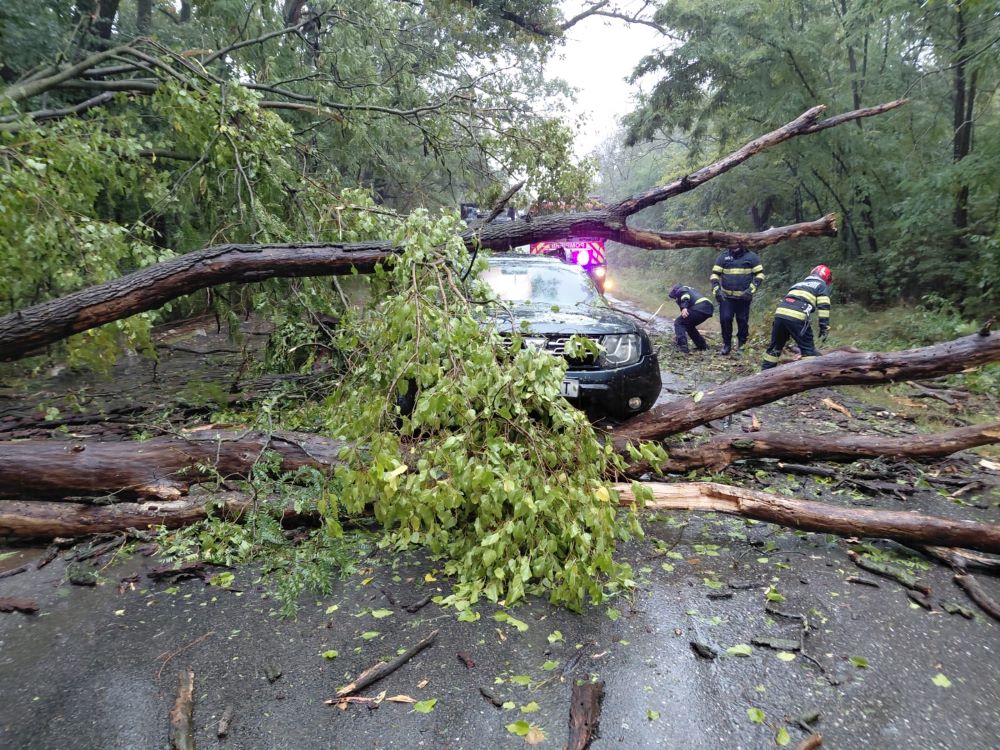 ULTIMA ORĂ Un copac căzut peste o mașină a blocat DN 23, la Popasul Dumbrăvița