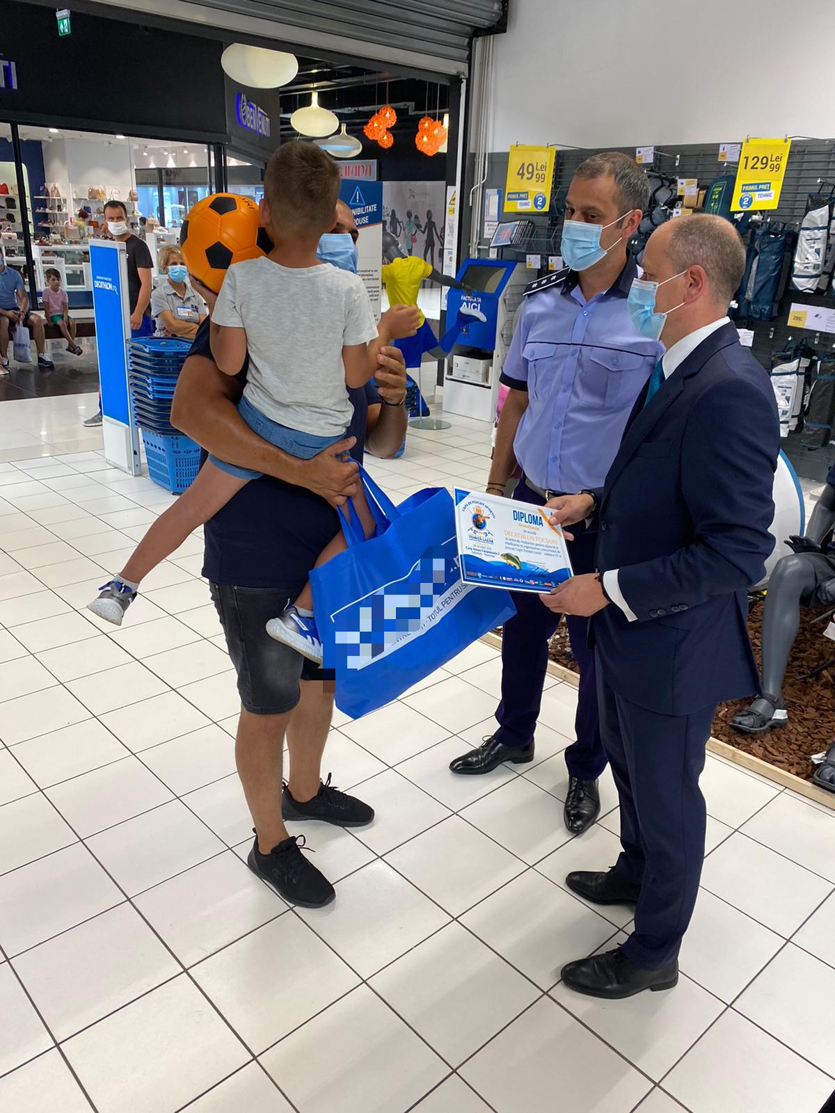 Un copil diagnosticat cu o boală gravă, ajutat de polițiști cu bani și articole sportive