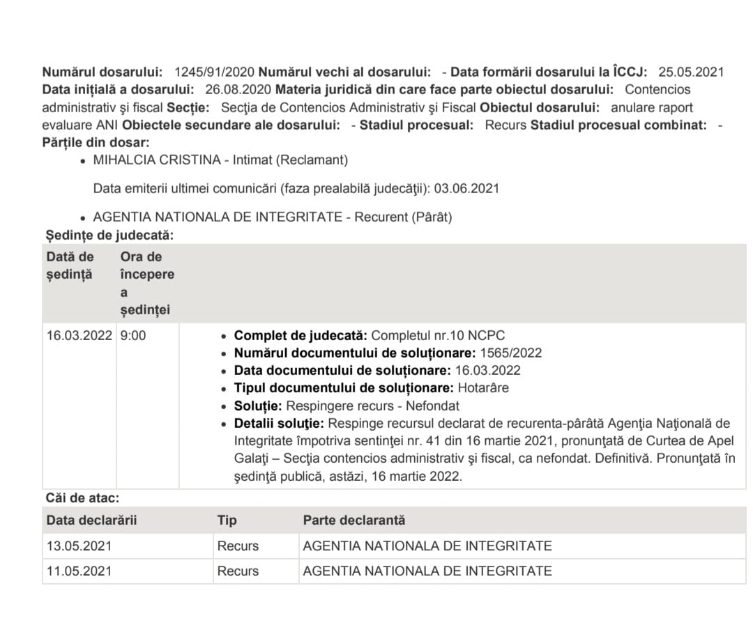 Un fost jurist al Primăriei Focșani a învins, definitiv, Agenția Națională de Integritate