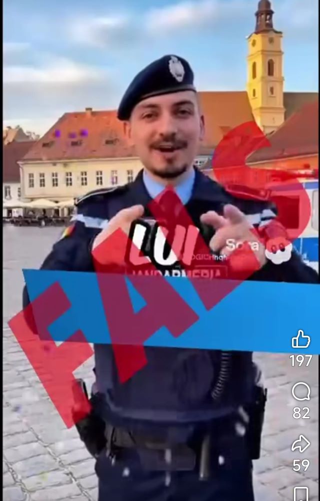 ”Precizăm ferm că imaginile sunt false, iar persoana prezentată nu este jandarm. Deși uniforma utilizată reproduce anumite elemente vizuale, există detalii clare – precum lipsa însemnelor oficiale, poziționarea incorectă a ecusoanelor sau a gradelor militare – care indică faptul că nu este vorba despre o uniformă autentică. Imaginile sunt asociate în mod eronat cu Jandarmeria Română, într-o încercare de a dezinforma și de a induce în eroare opinia publică.
